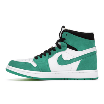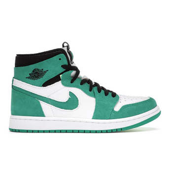 Air Jordan 1 High Zoom Air CMFT Stadium Green består af en hvid overdel i ruskind der komplimenteres af et Nike-swoosh og ruskindspaneler i lysegrøn. Sorte snørrebånd, en sort krave og et sort Wings-logo giver en fed kontrast til skoen og giver den et fuldendt look.