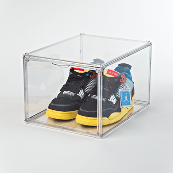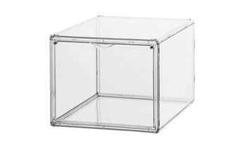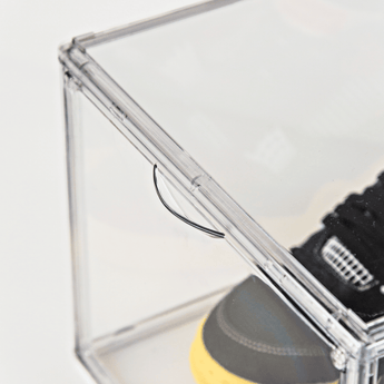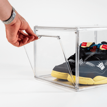 Denne sneakerboks er ideel til dig, som elsker sneakers. Vores Sneakerboks er konstrueret i hård plast med en drop down i siden, som lukkes åbnes og lukkes nemt med magneter. Sneaker boksen leveres i flere dele, og der følger en instruktion med til samling. Kun fantasien sætter grænser for, hvordan du stabler vores bokse, da de passer ind til ethvert rum.